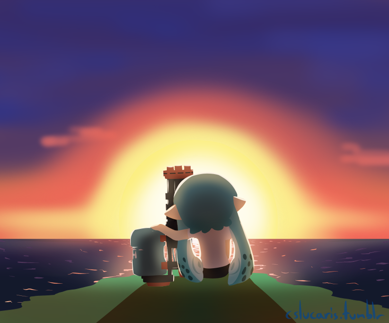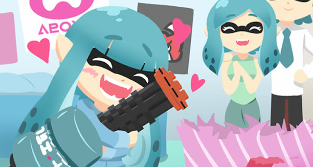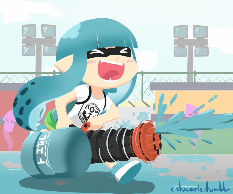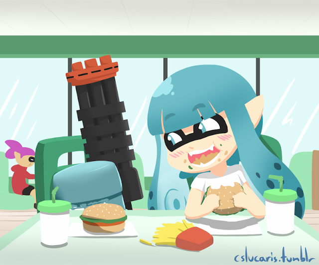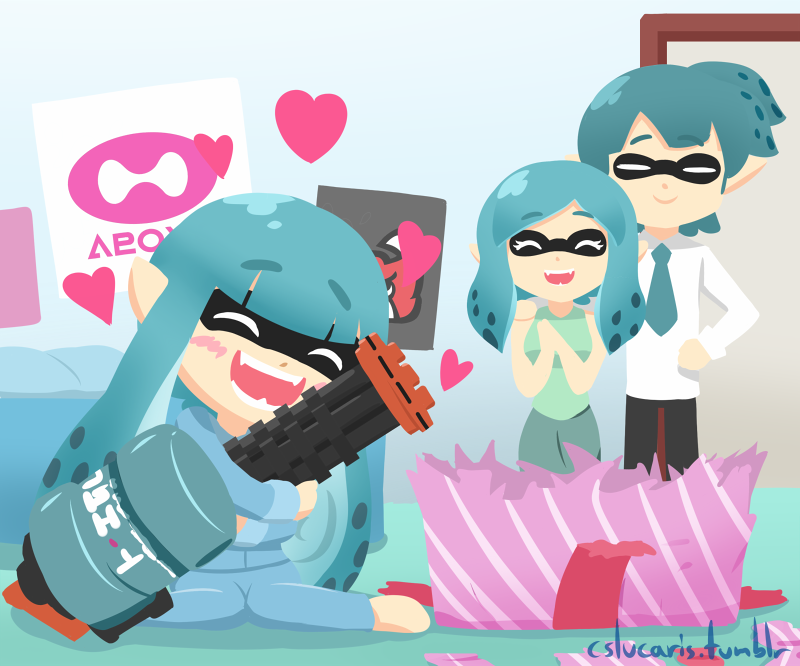 Enquanto a internet está levando muito a sério a "regra 34" da internet para a Squid Girl, outros artistas preferem pensar nela como a menina fofa que ela é. Este é o caso de CS Lucaris, que imaginou a reação da personagem ao ganhar uma nova arma de seus pais.