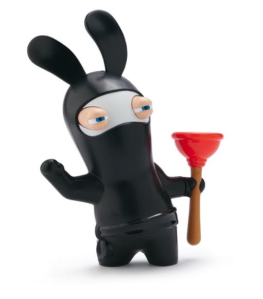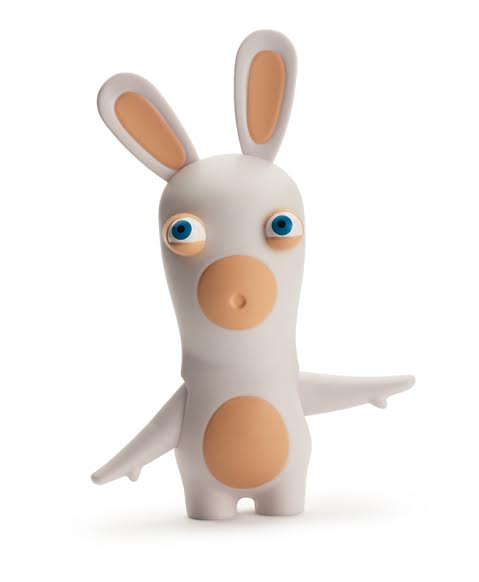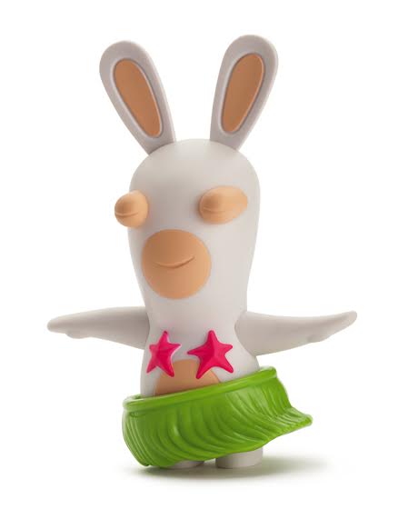 Um dos brinquedos é o Rabbid Bwaah que representa um Rabbid contrariado, com os olhos avermelhados. Ao puxar as orelhas do brinquedo, ele emitirá um som. O Rabbid Astronauta está pronto para sua próxima aventura. Ao apertar o botão na parte de trás do brinquedo, o rosto de Rabbid Astronauta irá se esticar até tocar o vidro do capacete. Já com o Rabbid Raio-X, ao pressionar a alavanca nas costas do brinquedo, após ligá-lo, a tela se acenderá e irá aparecer uma imagem. O Rabbid TV move as orelhas e muda a imagem que está na televisão acoplada em seu corpo. São três diferentes imagens a serem alternadas. Ao soprar pelo furo localizado nas costas do Rabbid Travesso, o brinquedo mostrará a língua. O Rabbid Ninja possui um desentupidor na mão, ao girar a mão do brinquedo para trás e soltá-lo, o objeto começará a girar. Para ver o Rabbid Havaiano dançar, basta pressionar a alavanca nas costas do brinquedo, e a saia havaiana começará a mexer. O Rabbid Maluco emitirá um som e moverá as orelhas ao ser sacudido. Desta vez, o famoso Happy aparece fantasiado de Rabbid para acompanhar essa turma bagunceira.