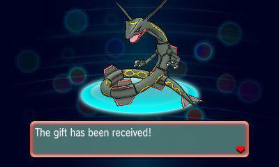 A Nintendo disponibilizou um Rayquaza Shiny para todos jogadores americanos de Pokémon Omega Ruby e Alpha Saphire. Todos que tiverem a versão americana do game podem fazer o download da criatura.