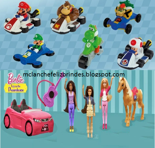 Depois de Pokémon e até alguns bonecos baseados em Mario, chegou a fez da franquia Mario Kart chegar no McLanche Feliz. A coleção é a mesma lançada no Japão, trazendo 7 carrinhos de fricção baseados nos personagens do jogo, entre Mario, Yoshi, Toad, Peach, Luigi, Bowser e DK.