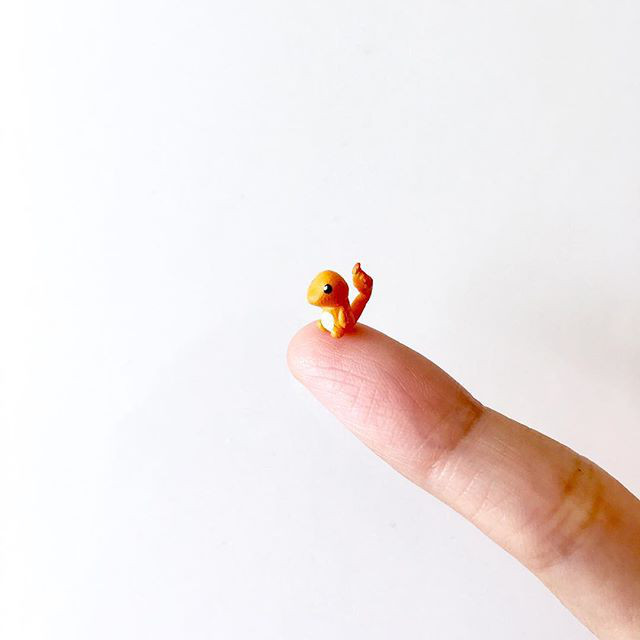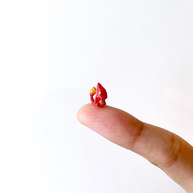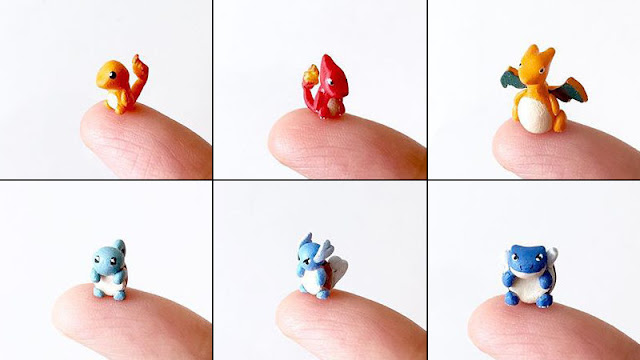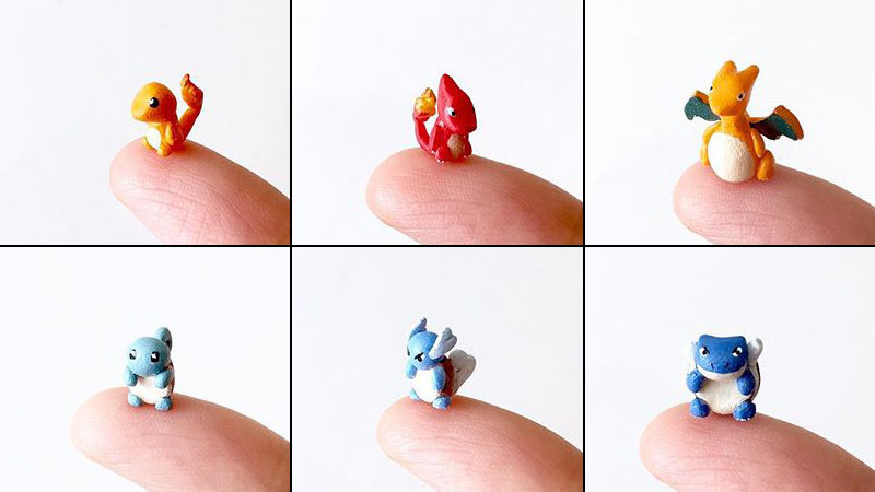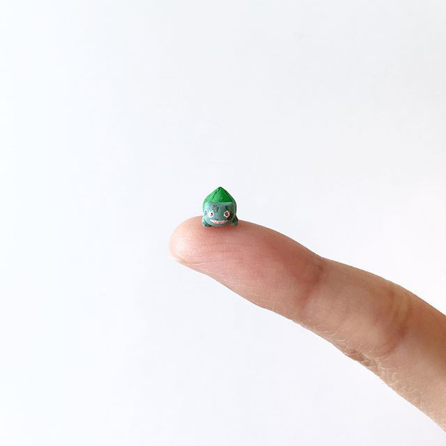 O usuário Ruby do Devianart é um artista que costuma produzir miniaturas de personagens em versão micro, a ponto de precisar de uma lupa para serem enxergados. Existem diversas variações, mas Ruby também produziu versões micro dos Pokémon iniciais de Kanto, conforme visto abaixo.