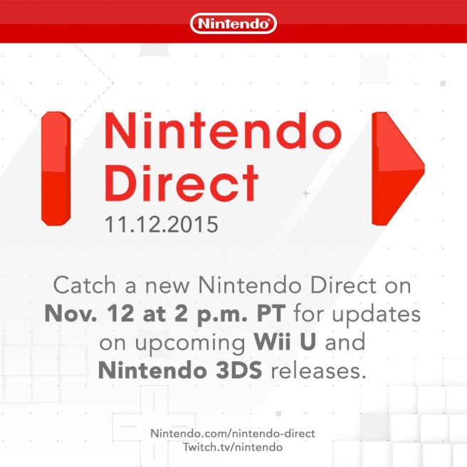 Depois de tanto tempo, a Nintendo anunciou um novo Nintendo Direct para esta semana. A apresentação será realizada no dia 12 de novembro, as 8 PM (horário de Brasília), e focará na apresentação de futuros jogos do 3DS e Wii U.