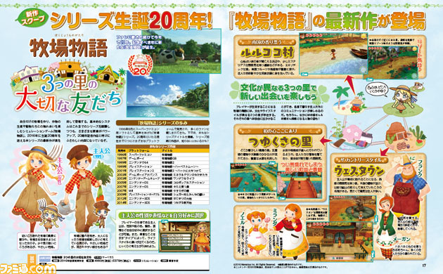 Para celebrar os 20 anos da franquia Story of Seasons no Japão, um novo game da série foi anunciado. A mais nova edição da Famitsu revelou que o 3DS receberá Story of Seasons: Good Friends of Three Villages, o segundo jogo da franquia para o portátil. Veja a imagem da publicação japonesa abaixo: