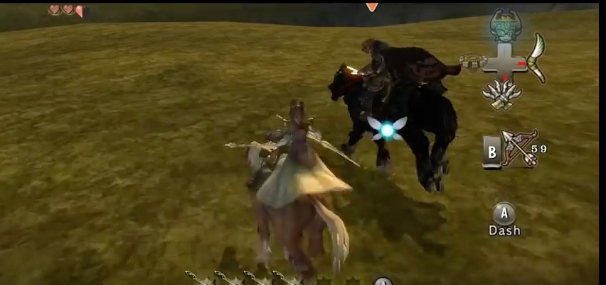 A luta entre Ganondorf e Link estremeceu todo o reino. A última parte ainda conta com uma batalha em cima de cavalos, com a ilustre presença da princesa Zelda na garupa da Epona ajudando nosso herói.