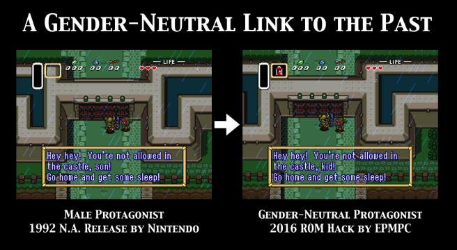 Por este motivo, Tony fez uma rom modificada de "A Link to the Past", modificando textos para garantir uma neutralidade de sexos. Basicamente, em lugares que explicitam o sexo masculino do personagem, foram modificadas palavras que não diferem o sexo do mesmo.
