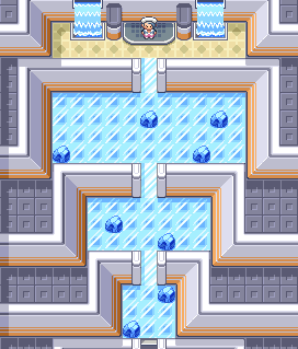 Os ginásios de gelo costumam entregar um desafio bem interessante, geralmente envolvendo um chão escorregadio no processo. No entanto, em Sootopolis Gym o objetivo subir em todos os painéis de gelo para rachá-los, liberando uma escada quando todos terem sido pisados. Detalhes: você só pode pisar uma vez em cada, senão o painel quebra e você cai em um fosso de treinadores, sem falar que você deve andar sobre o gelo de uma forma que seja possível acessar a escada em seguida.
