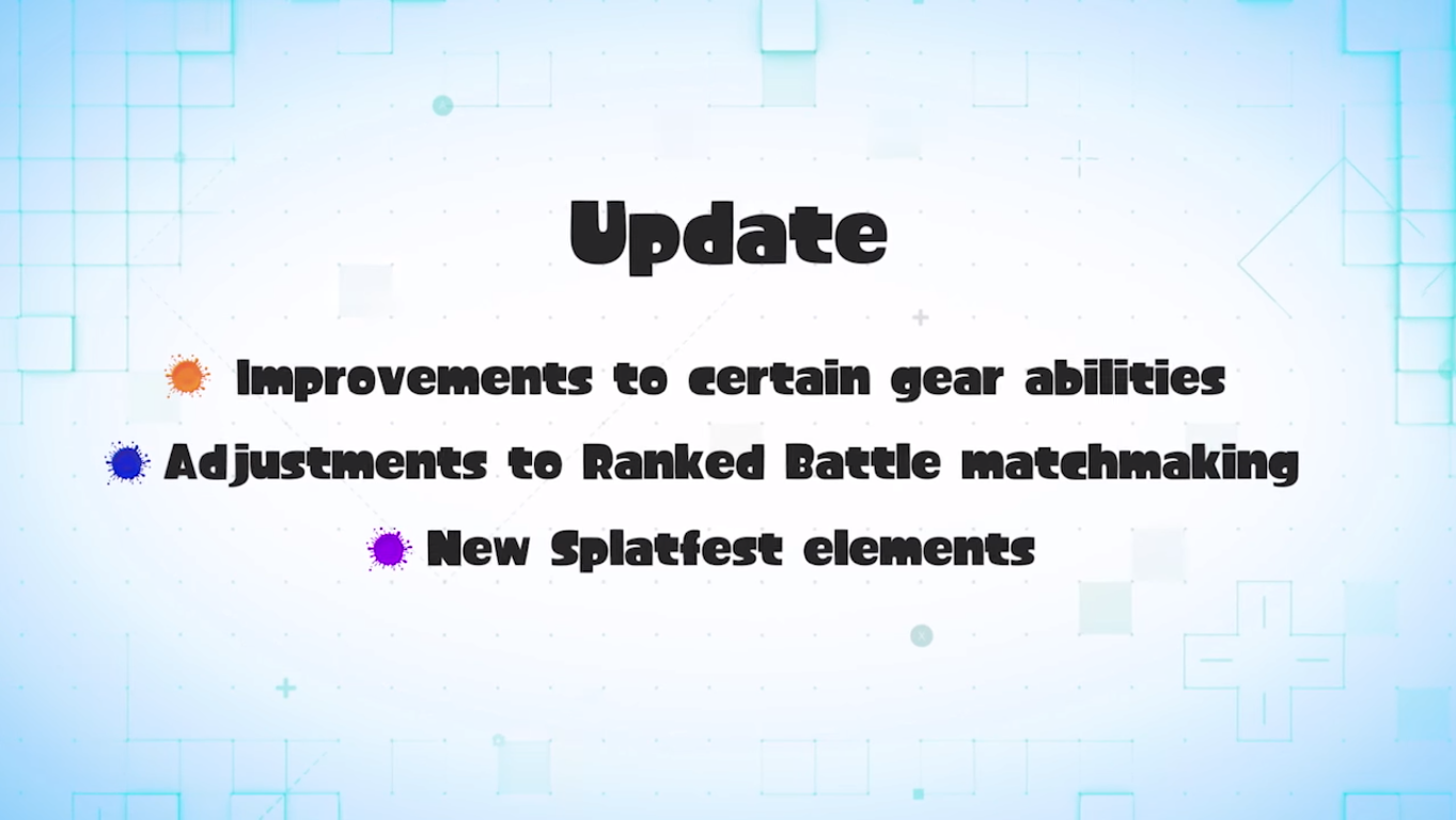 Achou que Splatoon já tinha terminado com a adição de conteúdo extra? A Nintendo resolveu nos mostrar que quem pensou isso cometeu um grande engano. Para começar, uma atualização será feita no jogo, trazendo algumas alterações. Dentre elas estão mudanças para o modo de Ranked, novos elementos para futuros Splatfests e ainda um upgrade em algumas das habilidades de equipamento menos usadas pelos jogadores. No entanto, nenhuma dessas novidades foi detalhada ainda, mas sabemos que elas chegarão já semana que vem, no dia 8 de março.