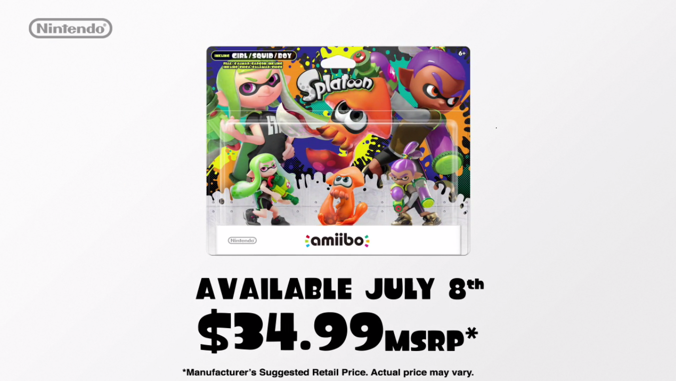 E não é só isso! Além de Callie e Marie, os amiibos já existentes de Splatoon ganharão uma nova versão com cores diferentes. A Inkling Girl será verde claro; o Inkling Boy terá a coloração roxa; por fim, a Squid (disponível no pacote especial que vende os três juntos) agora poderá ser vista na cor laranja.
