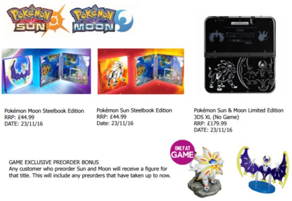 A loja GAME UK revelou que os compradores do mais novo jogo de Pokémon poderão ganhar uma estatueta de um dos lendários da nova geração. Quem escolher a versão Sun receberá uma figura de Solgaleo, enquanto quem ficar com Moon pode ter em mãos um réplica de Lunala. Claro, tudo isso contanto que a pessoa compre a pré-venda antes do estoque de bonecos acabarem. Confira a promoção de venda do jogo: