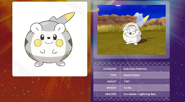 Togedemaru é um Pokémon rechonchudo que ganha eletricidade e guarda para si. O longo espinho que cresce atrás de sua cabeça funciona como um pára-raios que atrai eletricidade. Como um reservatório de energia, Togedemaru é capaz de liberar ataques elétricos poderosos.