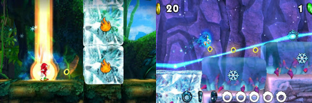 O que podemos esperar da jogabilidade de Fire & Ice é uma nova página do que foi visto em Shattered Crystal. Trata-se de uma aposta em um estilo mais tradicional de Sonic, mas com vários elementos adicionais que dependem da agilidade do jogador e das habilidades dos personagens. Em Shattered Crystal, esse era um esquema bem rústico ainda, sofrendo até por ser lento demais muitas vezes. Entretanto, essa é a base de Fire & Ice, mas dessa vez com a inclusão dos poderes de fogo e gelo.