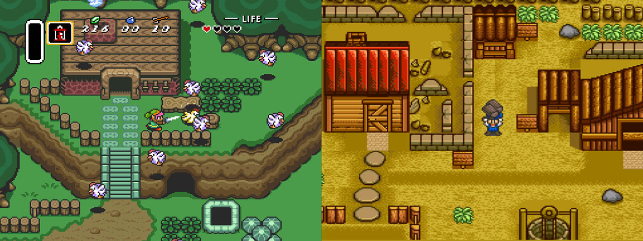 A forma como Link interage com os objetos e utiliza suas armas é uma das principais referências par Harvest Moon