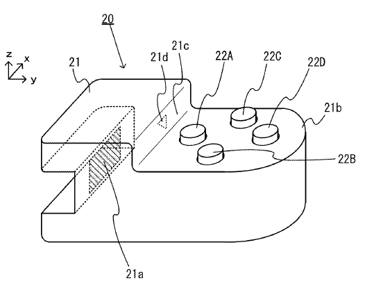Uma delas traz maiores detalhes dos controles destacáveis que vimos em patentes anteriores. No desenho do protótipo, estes controles se apresentam em um formato de acessório com botões, que pode ser plugado ou desplugado. Na descrição, é explicado que não existe qualquer conexão elétrica entre o acessório e o dispositivo, enquanto a detecção se o botão foi pressionado ou não é feito através de uma câmera com infravermelho.
