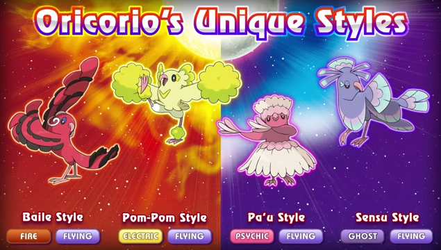 Além das novas formas dos Pokémon já conhecidos, novos tipos de Pokémon exclusivos de Alola foram apresentados. Entre eles o Oricorio que possui 4 formas diferentes Fogo/Voador, Elétrico/Voador, Psíquico/Voador e Fantasma/Voador com a habilidade Dancer. Cada ilha terá um desses tipos. Além dele, foi apresentado o Minior um Pokémon do tipo Pedra/Voador a com a habilidade Shields Down, a evolução dos Yungoos que são chamadas de Gumshoos, o Pokémon Formantis e sua evolução Lurantis que tem as habilidades Leaf Guard e Solar Blade e, por último, a pré evolução de Mudsdale, Mudbray.