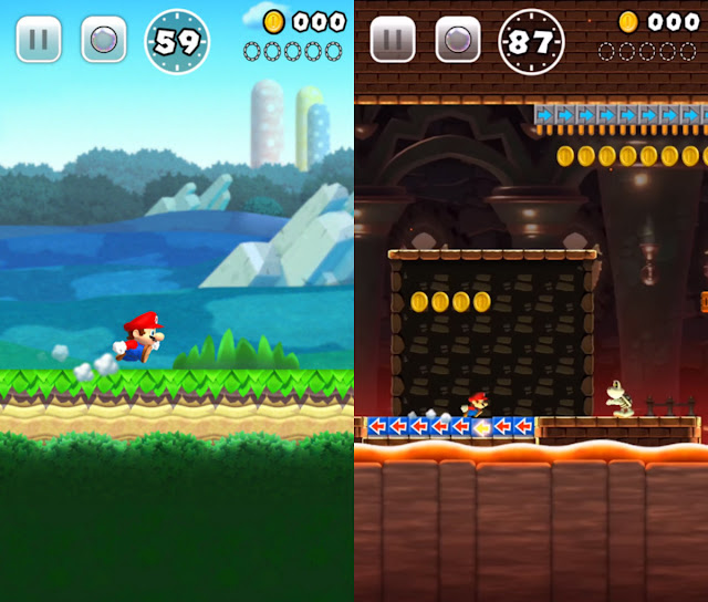 Só pelo visual, deve parecer óbvio que a grande inspiração técnica do jogo vem da série New Super Mario Bros. Porém, não se trata apenas de gráficos. Ao menos no trailer de Super Mario Run, a trilha sonora parece quase inteiramente tirada dos jogos New, assim como as telas de fundo dos níveis. No quesito jogabilidade, estão inclusos elementos como o Wall Jump (usar a parede para pular) e o giro no ar que ajuda Mario a se manter mais tempo fora do chão. Tudo vindo diretamente de New Super Mario Bros. Será que também veremos power-ups como a P-Accorn ou o Propeller Mushroom?